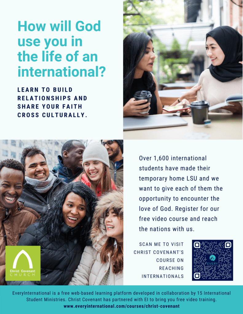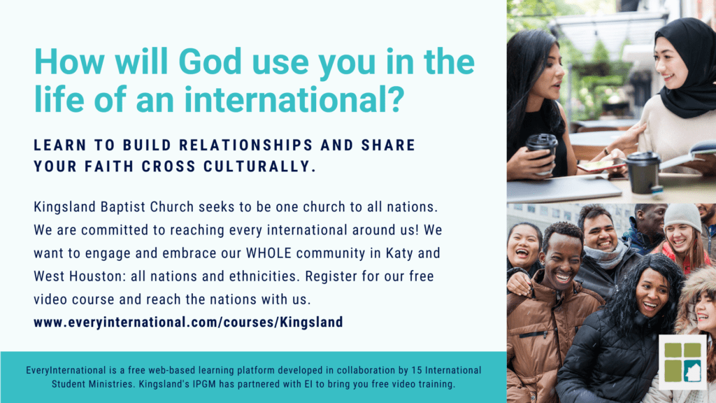 EveryInternational® aims to help you grow in your confidence in befriending internationals and sharing your faith with them. After completing a course you become eligible for free distance coaching to help you continue your ministry journey.
